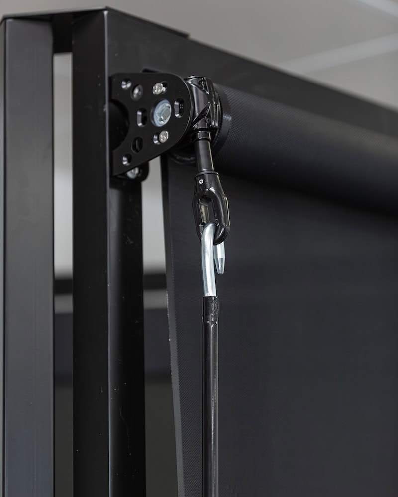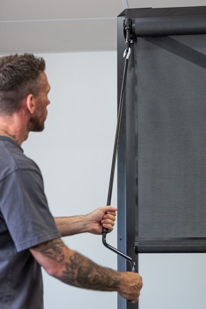 Everyday outdoor blinds use a simple crank and clip system, allowing the blind to drop straight down or on an angle, then secure at the base using clips. This makes them one of the most flexible and DIY-friendly options available.